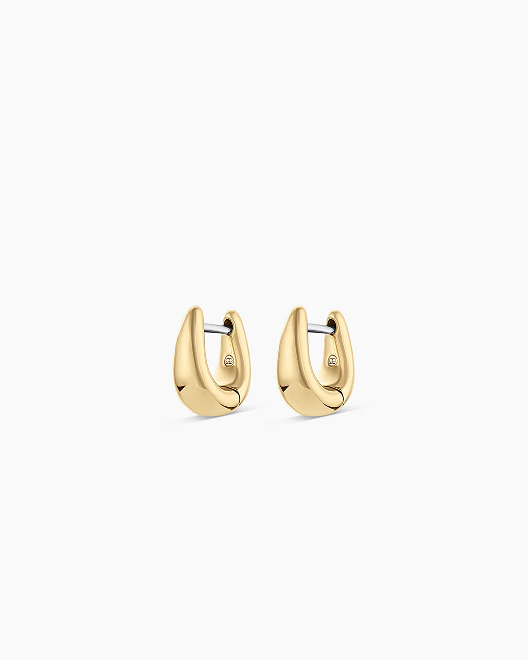 Designed to hug your earlobe, these 18k gold plated huggie earrings are your go-to for effortless stacking. Style your huggies with hoops and studs, or let them shine solo for a minimalist moment. Lightweight and versatile, they transition seamlessly from your morning coffee to a night out.