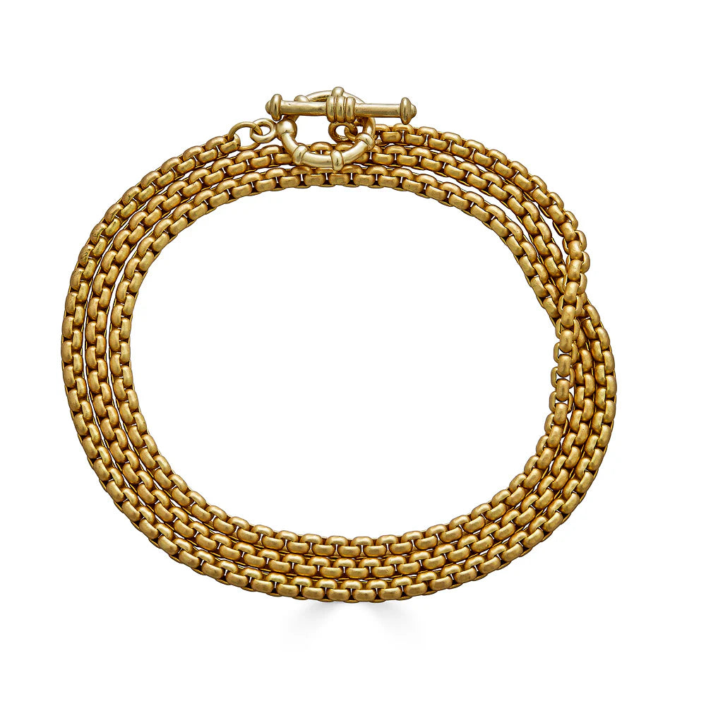 Undeniably timeless and elegant in its simplicity, this gold Venetian box chain necklace was designed for those who love classic and versatile pieces. This Venetian lariat chain can be styled as a necklace or a triple wrap bracelet, giving you more styling possibilities with a single, everyday jewelry piece.