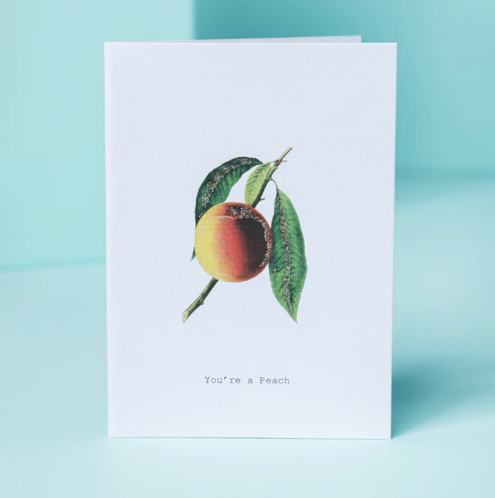 With cheeky sentiments for every occasion, these artfully illustrated greeting cards are as much a treat to give as to receive. Textured paper frosted with hand-glittered accents. Card is blank inside. Envelope included.