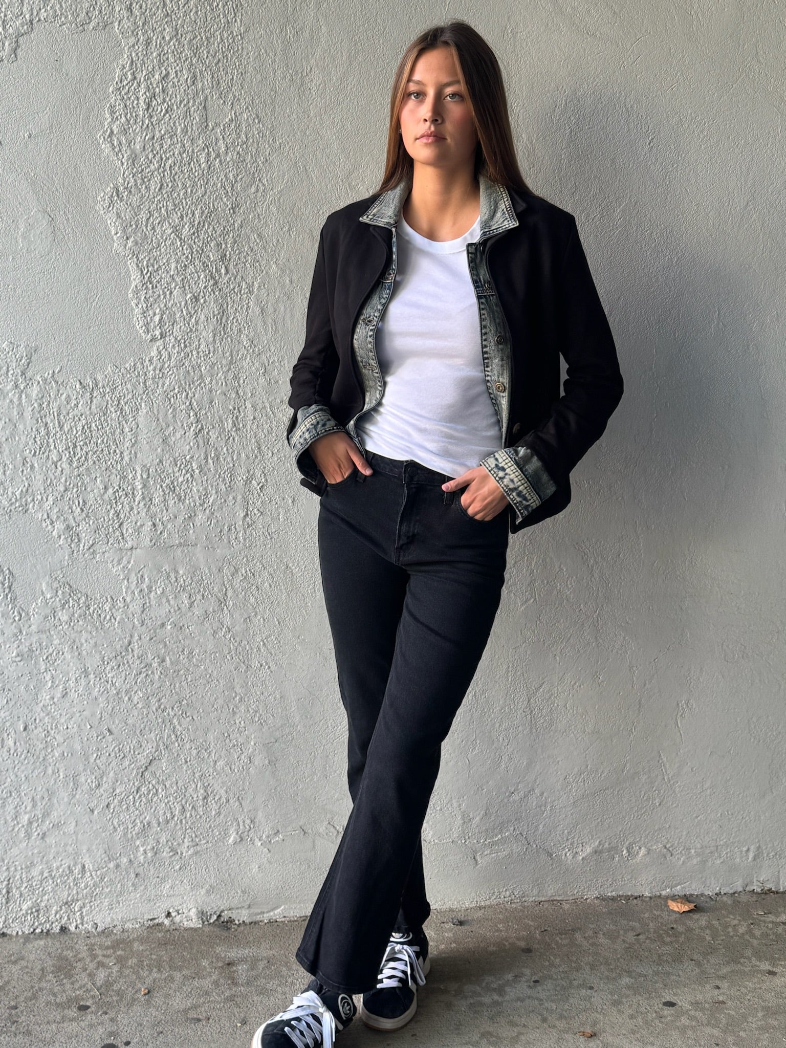Made in Italy with love…this is one of our most requested styles that we keep bringing back. The attention to detail on this jacket is what makes it a true novelty piece. The mix of a classic blazer with denim gives it an edge that can be dressed down with your favorite white tee or dressed up with a sophisticated blouse. Featuring double layered edges, denim elbow patches and a textured pattern.