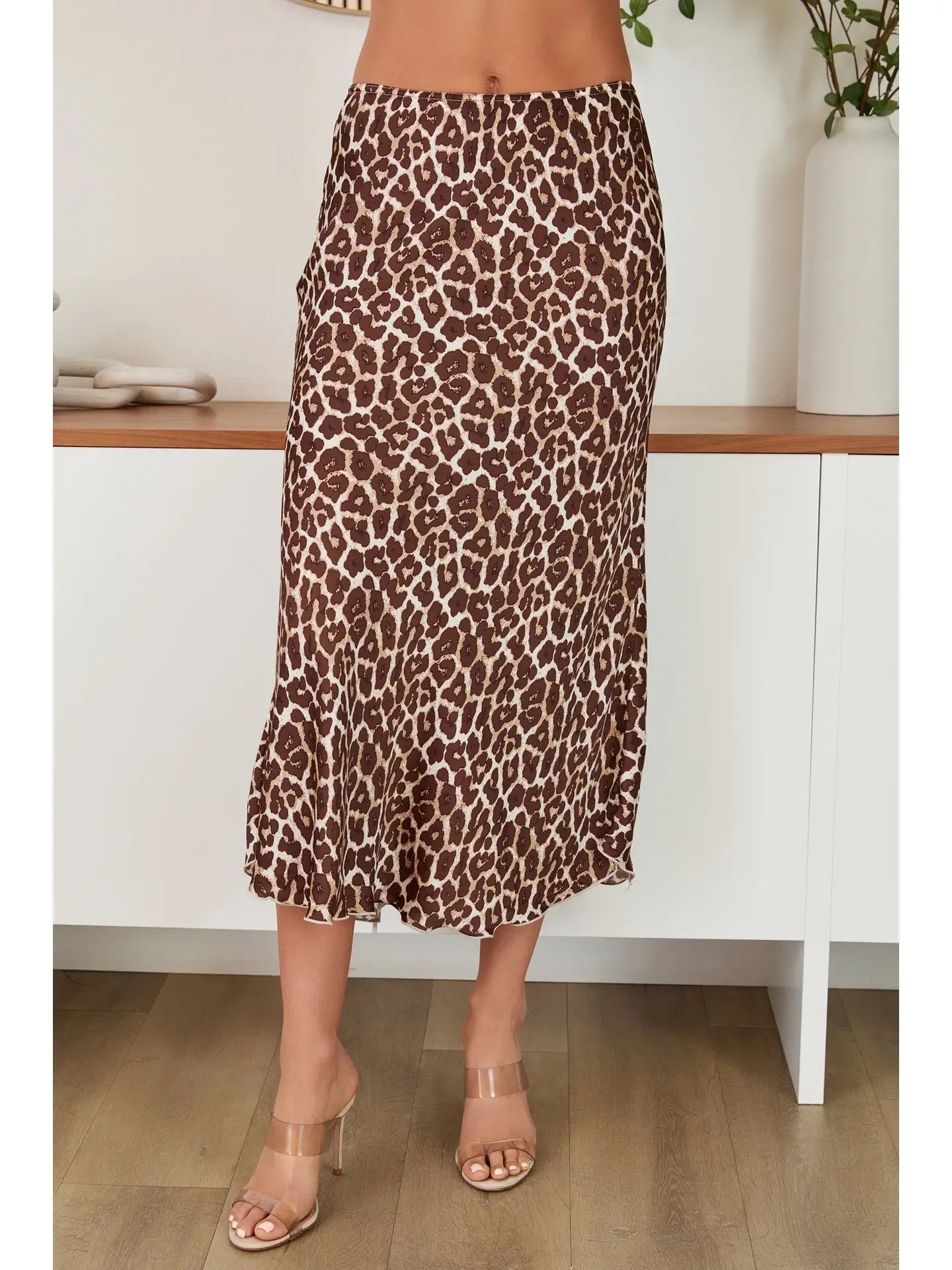Turn heads with this cheetah print silky midi skirt that effortlessly blends boldness and elegance. The smooth, silky fabric drapes beautifully for a flattering fit, while the striking print adds a fierce, fashionable edge. Perfect for dressing up or down, this skirt is a versatile statement piece that elevates any outfit.