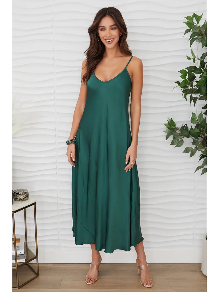 Constructed with 100% linen, this dress features a flattering v-neckline, adjustable spaghetti straps, and full-length silhouette. Its airy fit will help you feel cool, refreshed, and stylish all day long. Perfect for any special occasion or outing.