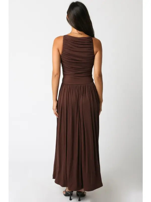 Our Leni Maxi Dress features a soft and stretchy fabric for a comfortable, flattering fit and a high neckline with a flowy maxi silhouette for an elegant and effortless look.