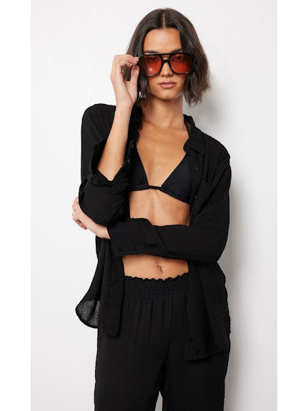 This long sleeve button down top is perfect lightweight layer for the warmer days.