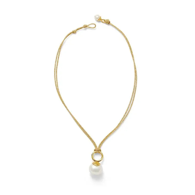 - Resilient cording (nylon + cotton blend) 18 x 16mm large, white pebble pearl, sits flat on neck pearl button + loop closure