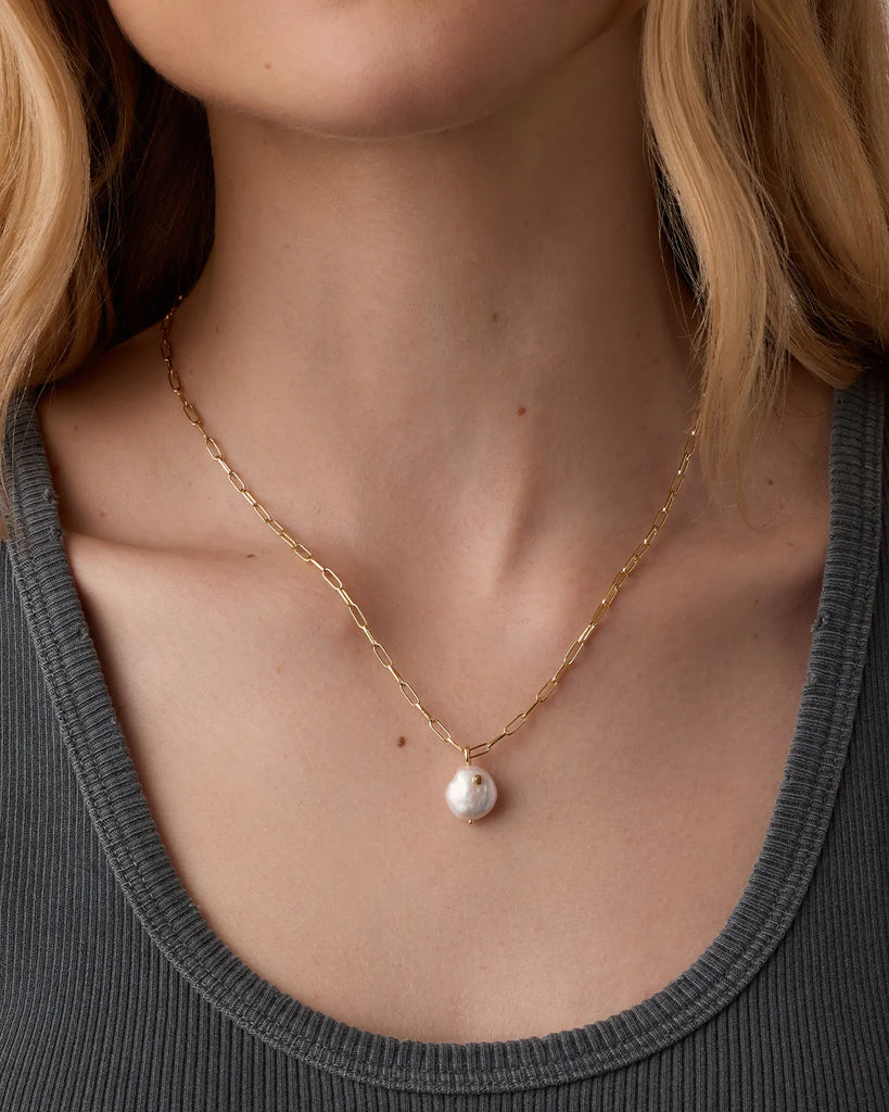 Naturally beautiful, the Reese Pearl Necklace is the perfect addition to any look. Crafted from gold plated chain and genuine pearl, this timeless piece shines with sophistication. Layer it with other gold necklaces for a truly unique look that's sure to turn heads.