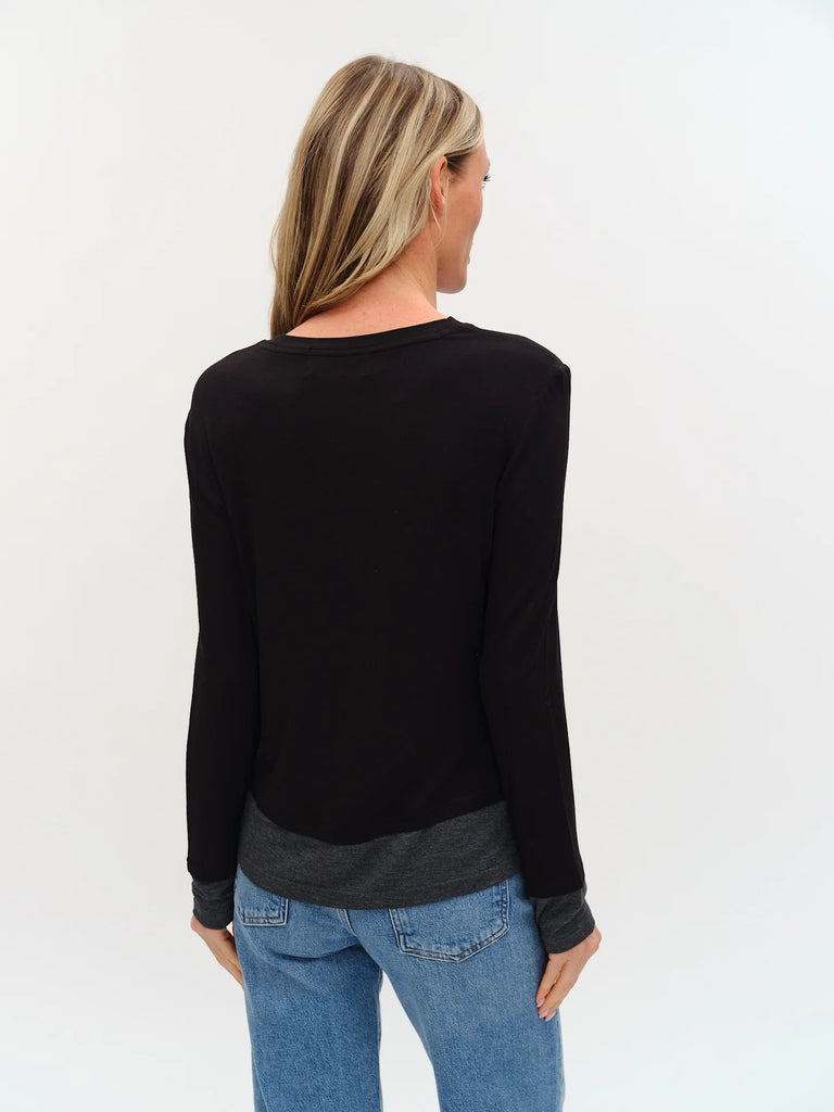 Are you looking for a layering piece that doesn't actually require you to layer? You'll love the Izzy top. Stylish and comfortable, this layered tee adds a sophisticated twist to your top.