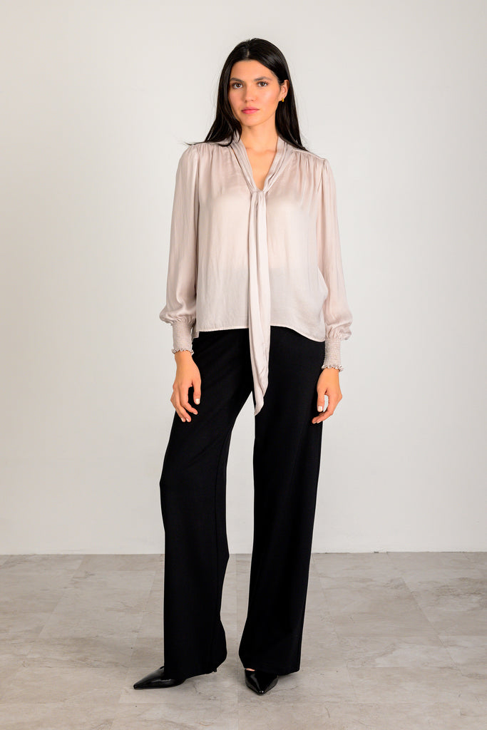 Cropped Long sleeve Tie Top