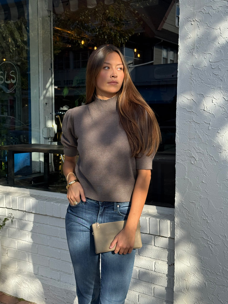 Mock Bubble Shoulder Knit Top